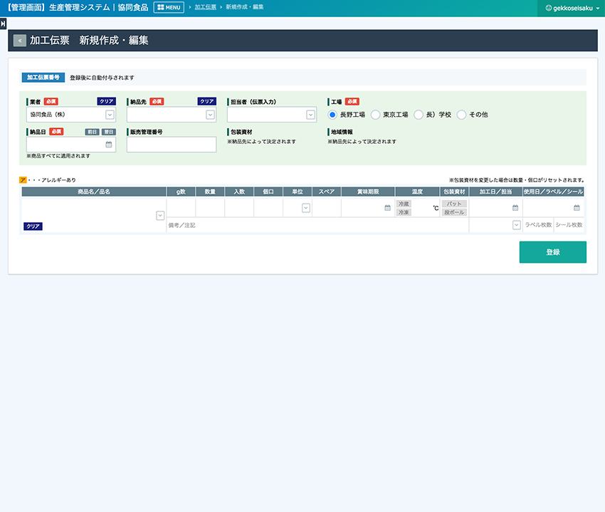 協同食品 生産管理システム